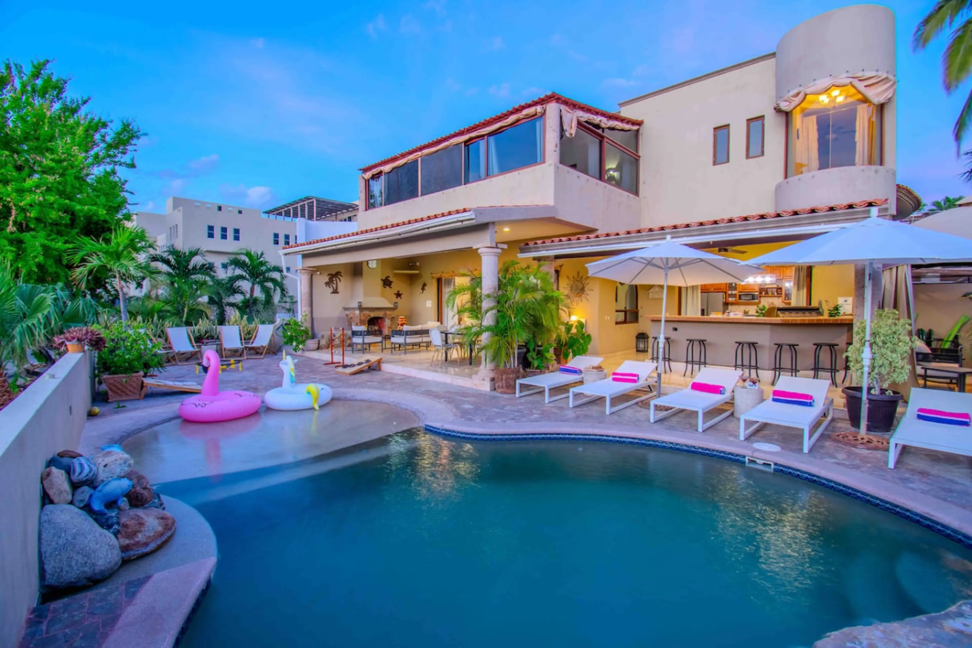 Welcome to Casa La Roca mini estate at Cabo Bello. This beautiful villa is located in safe and gated private community of Cabo Bello, attached a swimmable to a private beach. The home is spacious and tranquil with a private pool, hot tub (heating additional charge), outdoor fire place and a beaut...