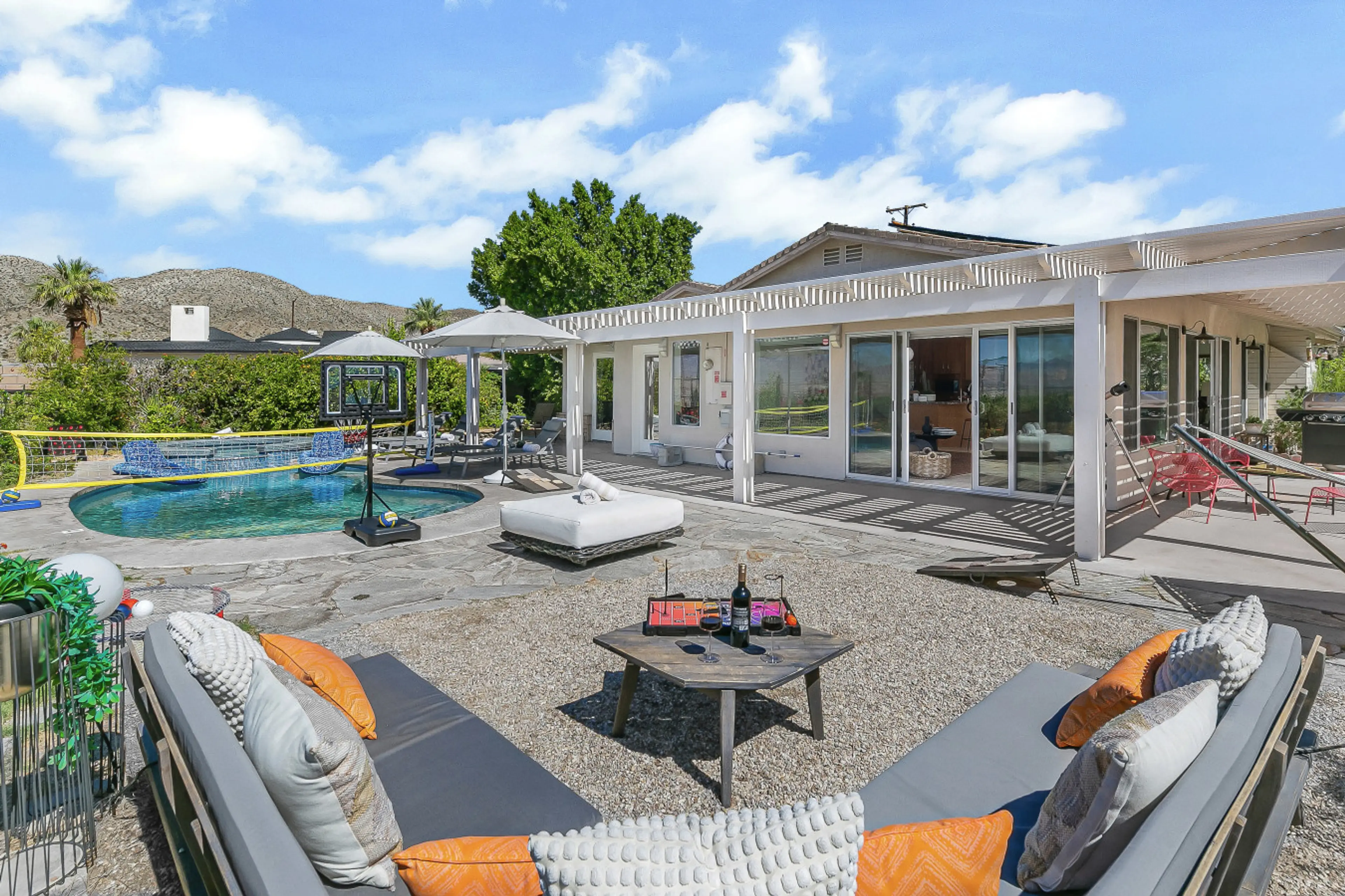 Perched high above the Coachella Valley, The Overlook awaits you. A very private retreat with 180 degrees of uninterrupted panoramas and soaring views. Every sunrise and sunset will leave you breathless. This newly renovated 2-bedroom, 3-bed, 2-bath home features modern appointed interiors, large sp...