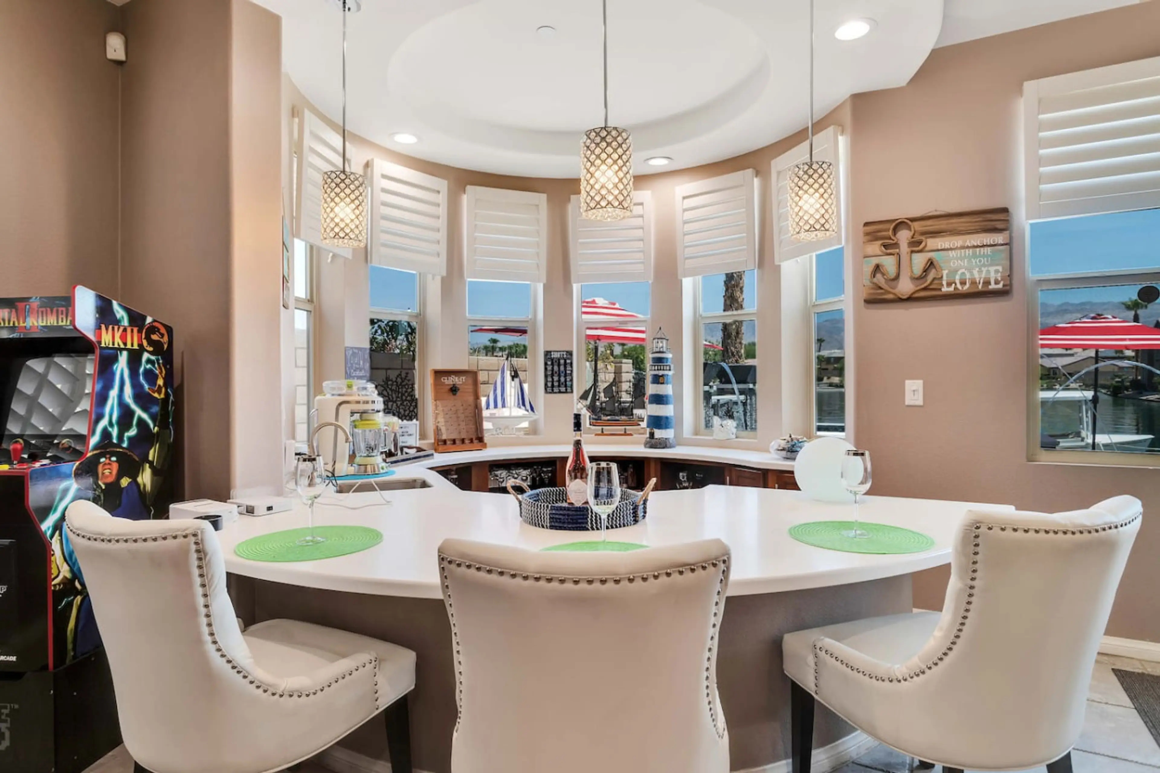 This magnificent villa is located ON THE LAKE with its very own private DOCK, new saltwater pool, & spa. You will enjoy breathtaking sunsets, & mountain views. Fully stocked kitchen with a water filtration system for your convenience. This stunning villa has plenty of entertainment to keep your frie...