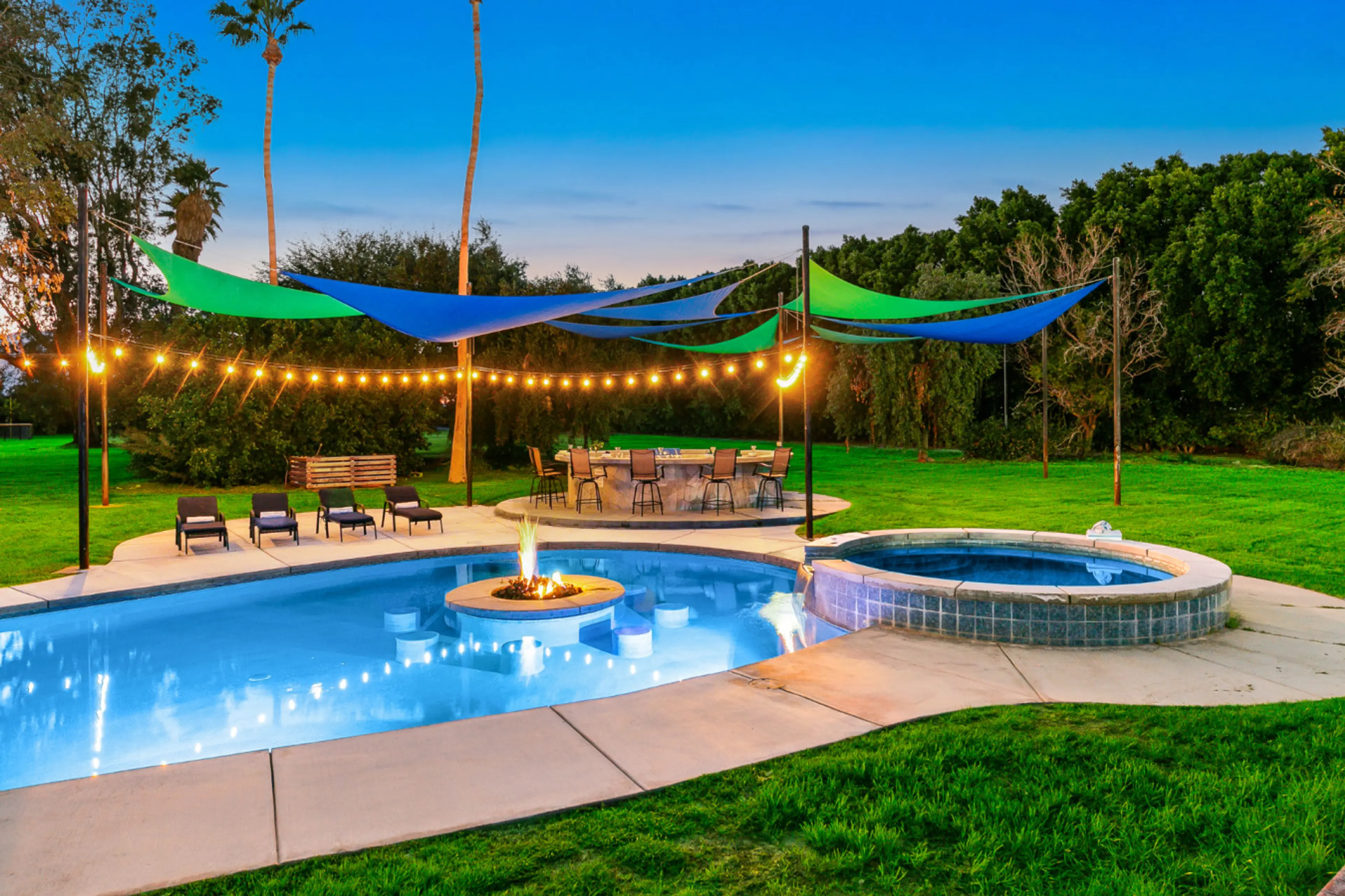 The whole group will be comfortable in this spacious and unique space. Pool: $100/nightly fee to 84 degrees. (More heat is an additional fee). Enjoy the convenience of PoolPilot for a 10% service fee.